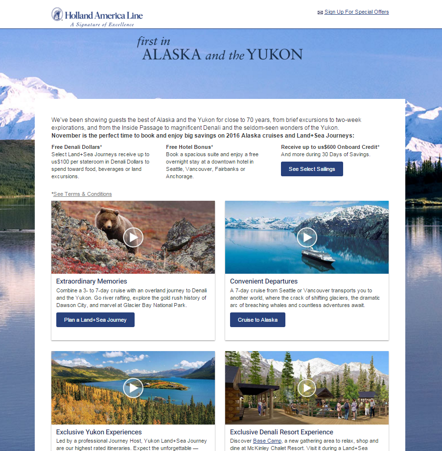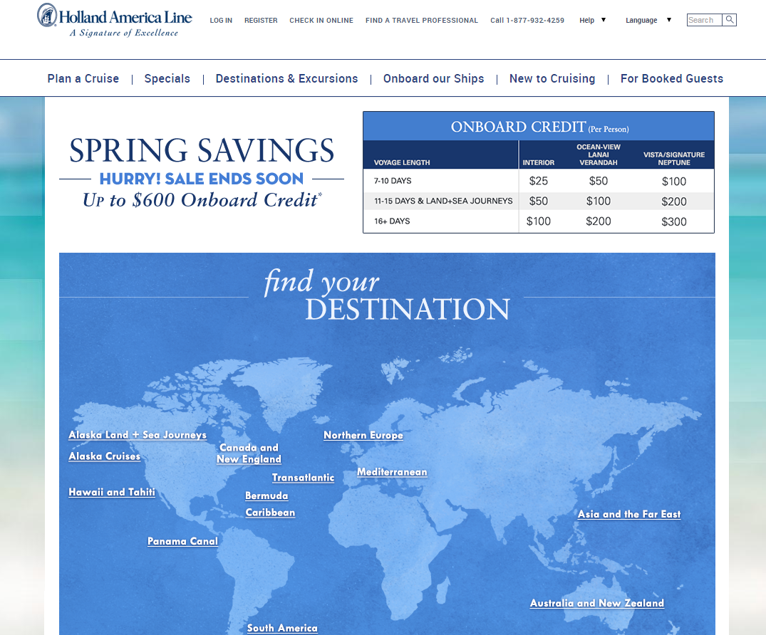 Holland America Landing Pages 2015-2016